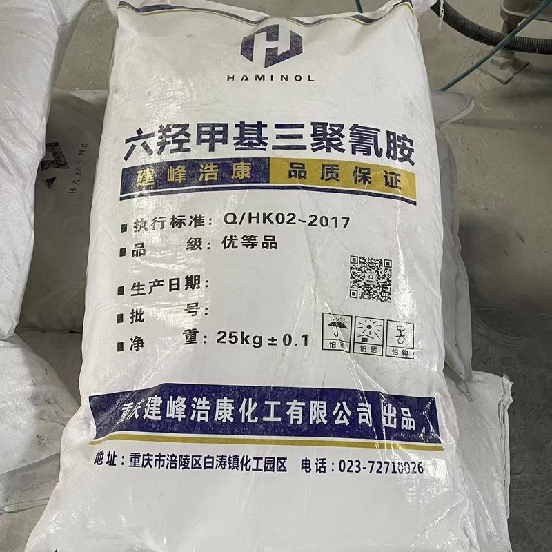 Le resine di melammina di Hexahydroxymethyl hanno proprietà eccellenti, non solo in termini di forza adesiva, acqua, calore e resistenza chimica, ma anche in termini di prodotti di trattamento resistenti incolori, trasparenti, duri e dell'abrasione e proprietà elettriche dell'isolamento. Il prodotto curato è incolore, trasparente, duro e resistente all'uso ed ha buone proprietà elettriche dell'isolamento. Di conseguenza, le resine di melammina sono utilizzate nei materiali di modellatura, in strati decorativi di plastica ed in laminati industriali. Quindi è usata nella formazione i materiali, i pannelli decorativi di plastica, i laminati industriali, i rivestimenti, la rifinitura del tessuto, la carta che elaborano, degli adesivi e per la produzione di compensato e dei laminati all'aperto. Quindi è utilizzata in una vasta gamma di domande come formazione i materiali, i pannelli decorativi di plastica, i laminati industriali, i rivestimenti, la rifinitura del tessuto, la carta che elaborano, degli adesivi e di produzione di compensato e dei laminati all'aperto. L'aggiunta della melammina di hexahydroxymethyl alla colla della urea-formaldeide la resistenza all'acqua della colla della urea-formaldeide può essere migliorata significativamente. La maggior parte delle fabbriche del compensato aggiunge una polvere per prolungare la durata della colla ed aumentare il tasso di aumento.